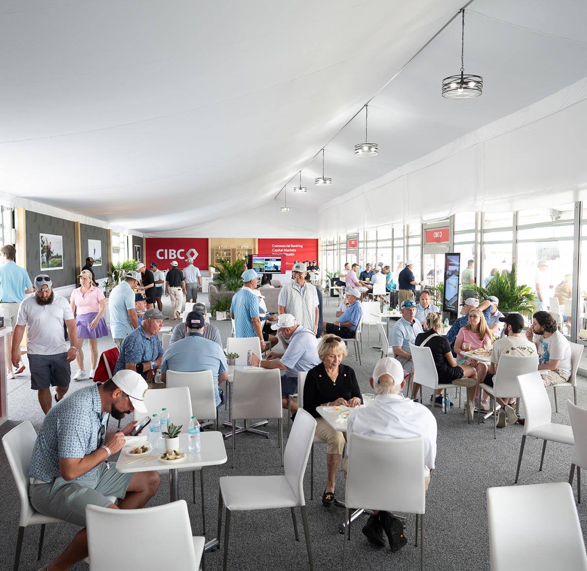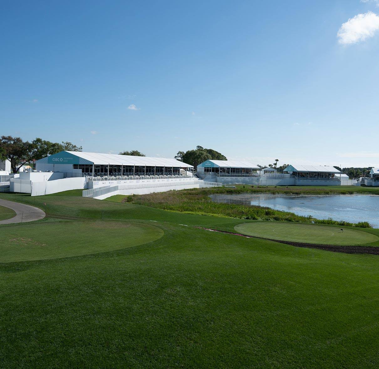 On Day 2, you’ll be transported to PGA National Resort where you’ll watch the tournament’s final round from the CIBC Champions Club on the 17th hole. Enjoy prime viewing from a blend of climate-controlled interior lounge seating and stadium-style seats on an exterior patio. Food and drinks, including wine and beer, will be offered throughout the day. Stay here, relax, and watch the pros play through. Or explore the tournament grounds and follow your favorite golfers.